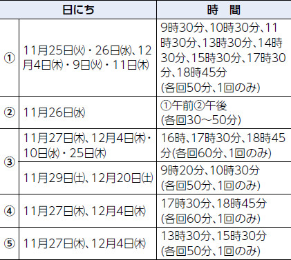 日時:11月19日~3月25日の毎週水曜日(祝日等を除く)10時20分~10時50分