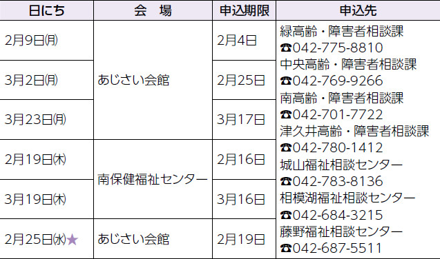 ※申込時に時間などを調整。初めて肢体補装具の購入を希望する人や、変更のある人はお問い合わせを。★手話通訳・要約筆記あり(要予約)