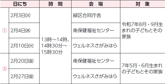 対象:令和6年12月~7年4月生まれの子どもとその家族