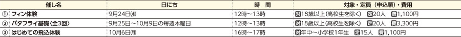 申し込み:9月5日から、直接か電話で同所へ。(1)(2)は同所HPからも可。(3)は対象の条件あり、同所HPを参照
